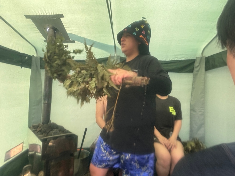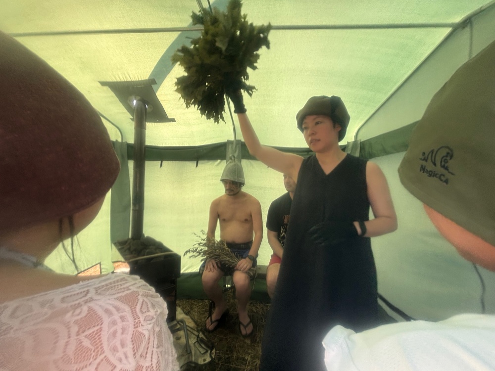 天井が円形なのでロウリュをすると一気に熱が上昇する仕組みになっているので一気に100度くらいまで上昇します。今回はバレルサウナでロウリュやテントサウナでウィスキングを体験しました。