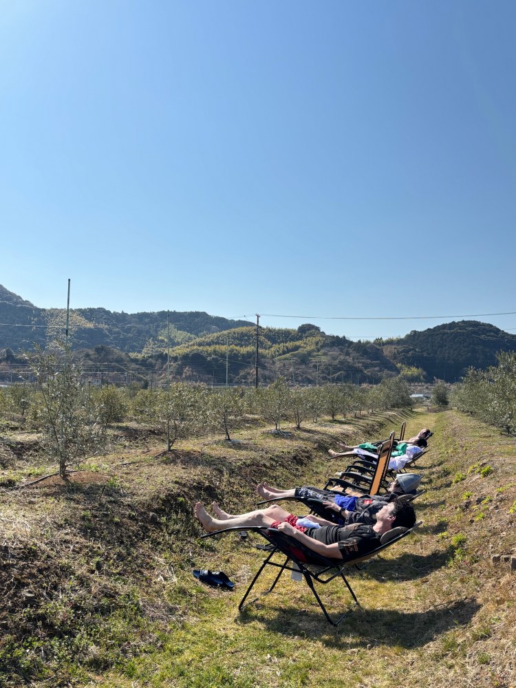 オリーブ園の真ん中で整い、至福のひと時を体験してもらいました。